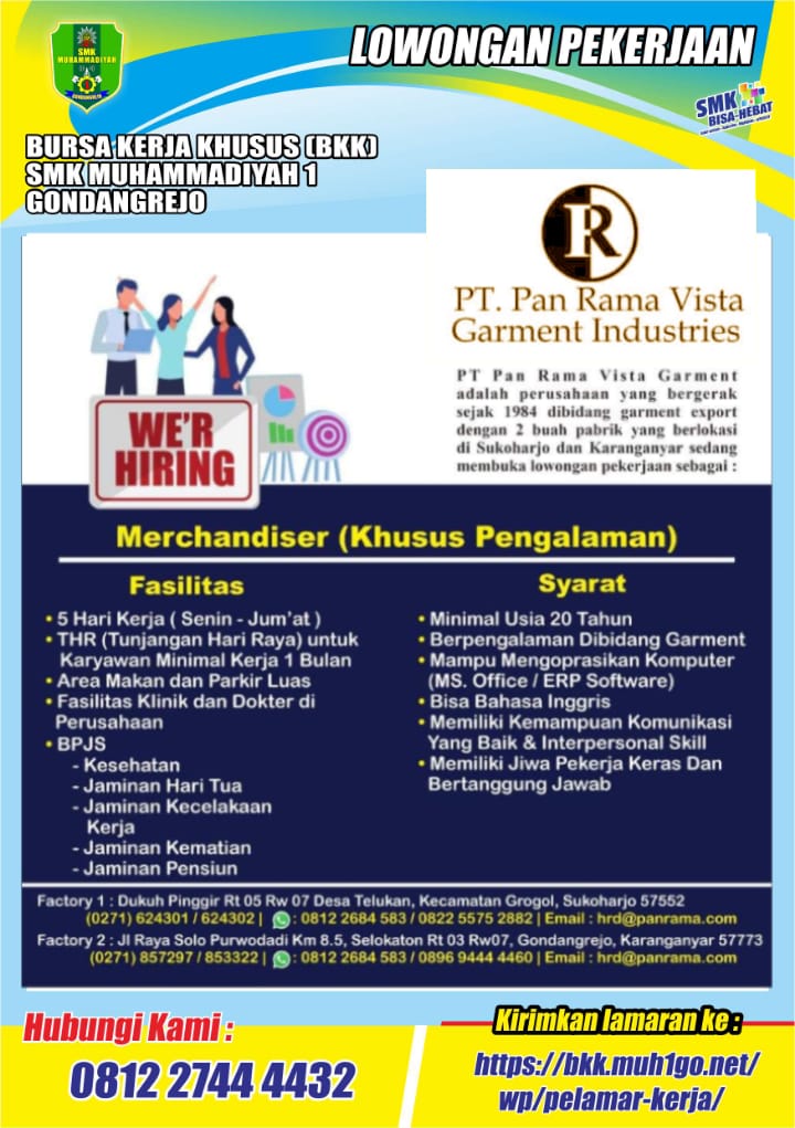 PT. Pan Rama Vista merupakan perusahaan yang bergerak di bidang Garment, mengajak anda untuk gabung dan bekerja pada posisi