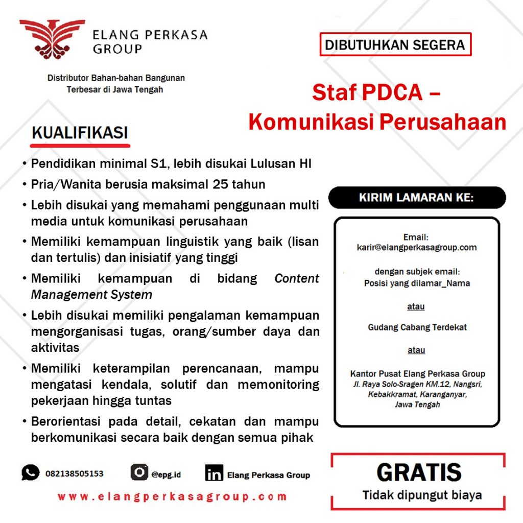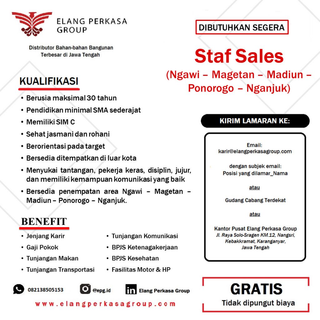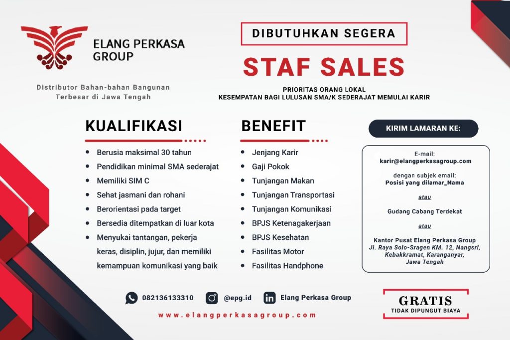 Selama lebih dari 25 tahun, Elang Perkasa Group melayani distribusi bahan bangunan di daerah Jawa Tengah melalui pusatnya di Kebakkramat, Karanganyar, Jawa Tengah. PT Elang Perkasa Group yang beralamatkan Jl. Solo – Sragen No.KM.12, Kebak Jetis, Nangsri, Kec. Kebakkramat, Kabupaten Karanganyar, Jawa Tengah 57762, membutuhkan: