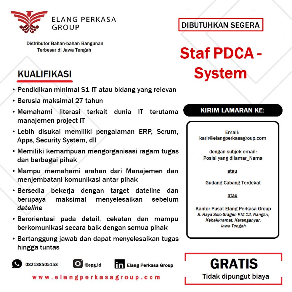1. Staf Sales (di Berbagai tempat) 2. Field Marketing Staff 3. Staf PDCA-Komunikasi Perusahaan 4. Staf PDCA-System |