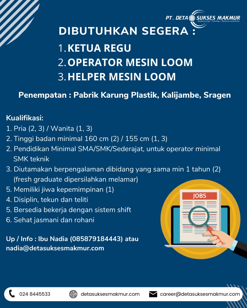 Penempatan : Pabrik Karung Plastik, Kalijambe, Sragen