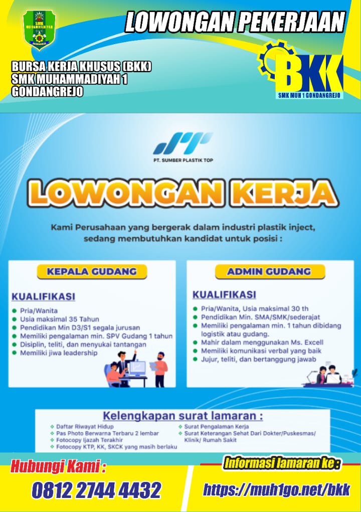 PT Sumber Plastik Top - Kami perusahaan yang bergerak dalam industri plastik inject, sedang membutuhkan kandidat untuk posisi :