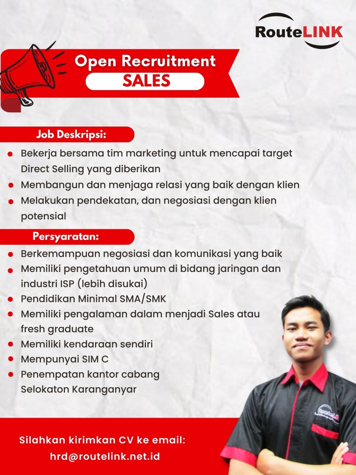 Penyedia koneksi Internet berbasis WiFi dengan kecepatan upload dan download yang sama dan stabil setara dedicated serta layanan Internet membuka lowongan pekerjaan sebagai