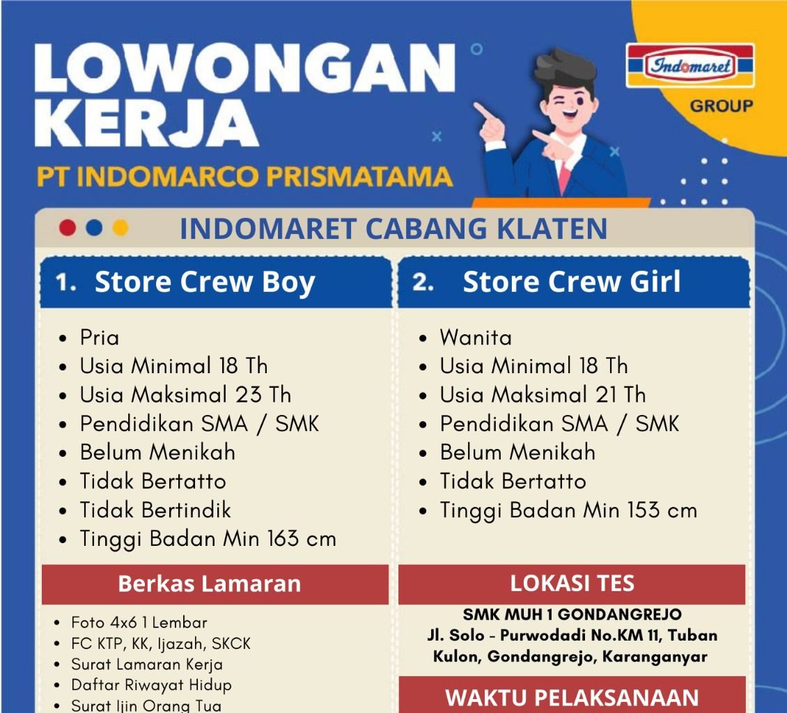 PT. Indomarco Prismatama yang dikenal dengan nama-nama seperti Indomaret, Indogrosir dan lain sebagaianya membuka lowongan pekerjaan dengan formasi sebagai: