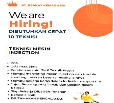 P.T. Berkat Kemas Asia adalah Perusahaan Manufaktur yang bergerak dibidang Kemasan khusus nya di kemasan kosmetik yang Inovatif dan didukung oleh Mesin Injeksi Molding yang presisi dan SDM yang Ber kompeten. membutuhkan