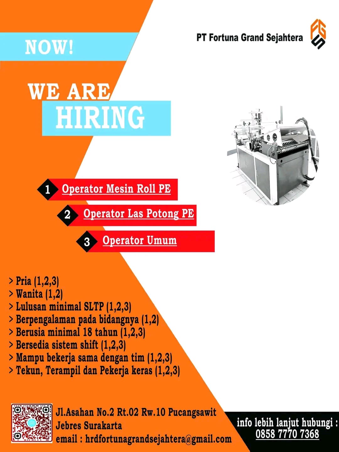 Lowongan PT. Fortuna Grand Sejahtera