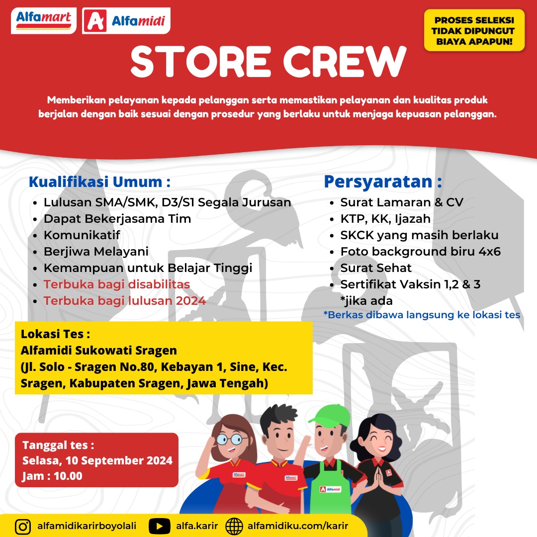 Alfamidi merupakan perusahaan di bidang ritel yang mempunyai outlet tersebar di kota-kota besar seluruh indonesia termembuka kesempatan bagi anda untuk gabung pada posisi