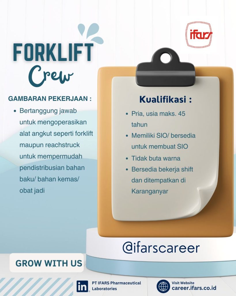 - Memiliki SIO forklift atau bersedia untuk membuat SIO